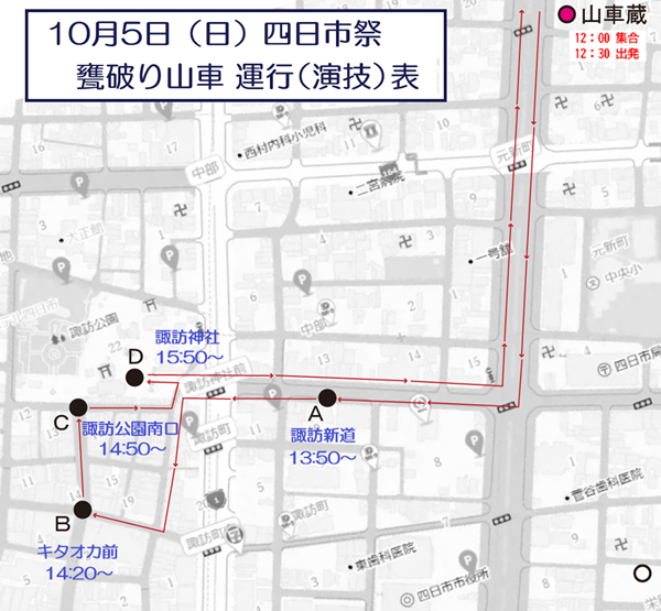 甕破り山車は17:45より三滝通りでご披露いたします。