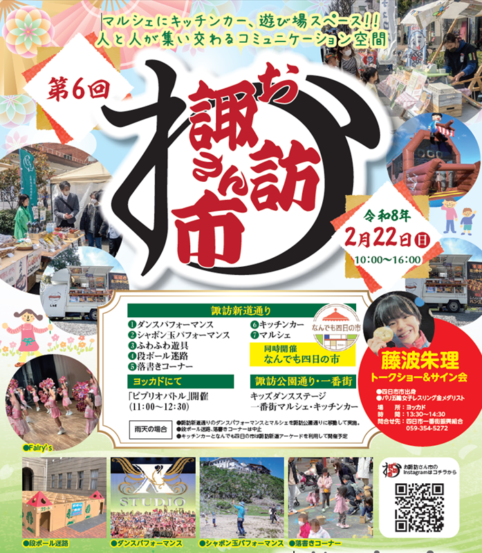 2月22日(日)10~16時「お諏訪さん市」開催‼️盛りだくさんなイベントに、寒さも忘れちゃう⁉️ぜひぜひお楽しみください🤗